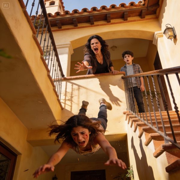 Me tambaleé hacia atrás, perdí el equilibrio y, antes de poder agarrarme a la barandilla, caí del segundo piso y me estrellé contra el pasillo. Sentí un dolor intenso en el hombro y las costillas.