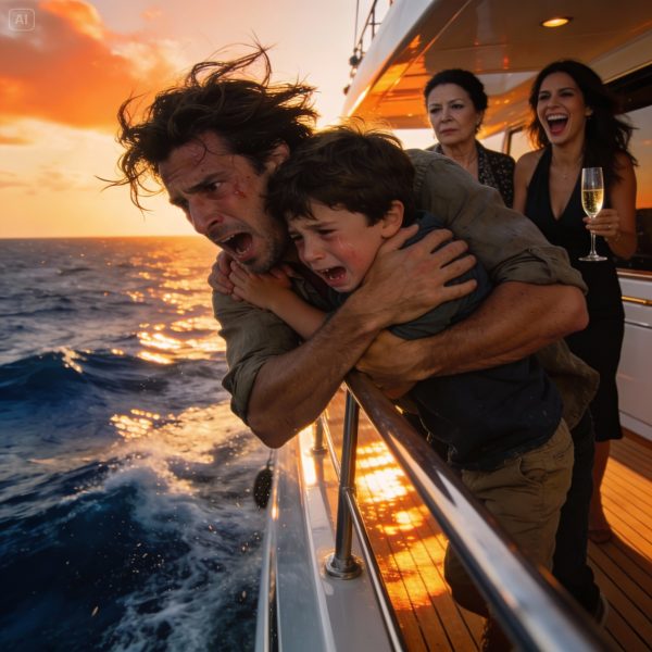 El agua salada me quemó la garganta. Me temblaban los brazos al sostener a Ethan sobre la superficie, pero soltarlo no era una opción. Ethan tosía y lloraba, con la cara pegada a mi cuello como si intentara desaparecer en mí.