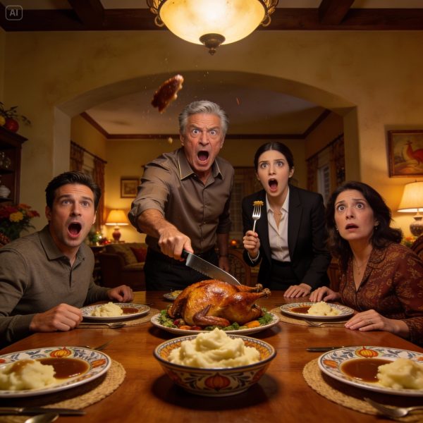 El tenedor de Brooke se congeló. Se quedó boquiabierta. Mi madre abrió mucho los ojos. Y mi padre… mi padre dejó de masticar, me miró fijamente desde el otro lado de la mesa y se quedó completamente en silencio, con el cuchillo suspendido sobre el pavo como si hubiera olvidado para qué servía.