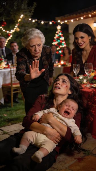 Desde que mi esposo murió, dejé de ser familia para ellos. En la cena de Navidad, mientras todos brindaban, a mí me empujaron a la cocina como una sirvienta. Cuando mi bebé empezó a llorar, lo tomé en brazos… y mi suegra explotó. “No eres madre, eres una criada”, gritó antes de arrastrarme afuera. Tropecé. Caí. Y mi hijo se me resbaló de los brazos. Grité desesperada… pero entonces mi cuñada dio un paso al frente y todo empeoró.