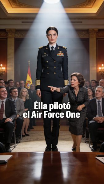 La multitud murmuraba, se burlaba. Yo permanecía de pie, sintiendo cada mirada sobre mí. Entonces, la esposa de un coronel habló, clara y firme: “Ella pilota el Air Force One”. El silencio llenó la sala. Nunca había sentido tanto respeto y sorpresa en una sola habitación. Lo que minutos antes era risa y desprecio, se transformó en admiración y asombro. Y yo entendí que algunas verdades no necesitan palabras… solo un momento para revelar el poder que siempre tuve.