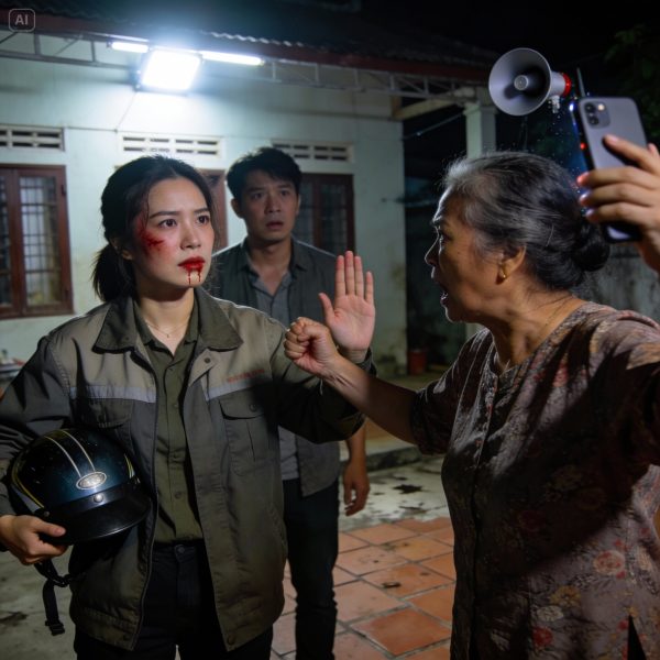 Chưa kịp tháo mũ bảo hiểm, tôi đã thấy mẹ chồng đứng ngay bậc thềm. Ánh mắt bà lạnh tanh. “Đi với thằng nào giờ này mới về?” — câu hỏi ném thẳng vào mặt tôi như một viên đá. Tôi mở miệng định nói về đơn hàng gấp, về chuyến xe hàng kẹt cầu, thì bốp. Má trái nóng rát. Bốp lần nữa, tai tôi ù đi.
