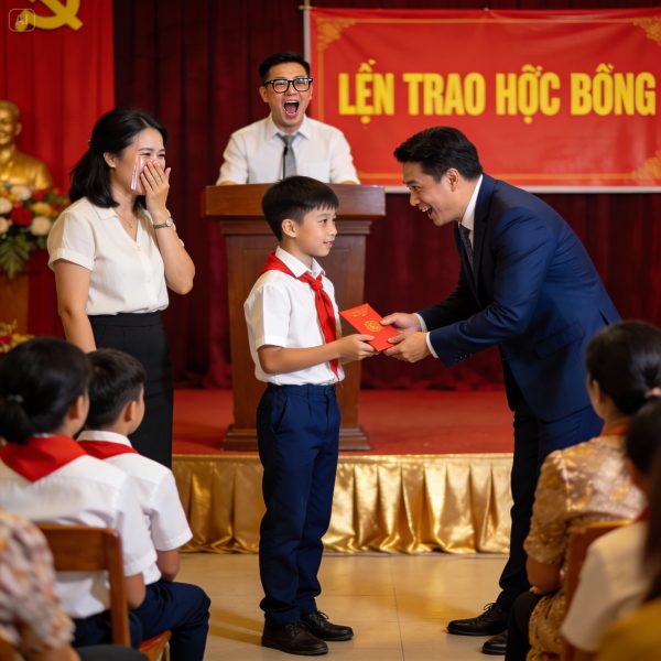 Ly đứng cuối hàng phụ huynh, tay đặt nhẹ lên vai Minh Khang. Con trai cô gầy nhưng ánh mắt sáng, là học sinh đứng đầu khối suốt ba năm liền. Cô chỉ mong con nhận được học bổng để đỡ phần chi phí học thêm.