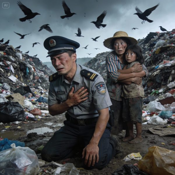 Đến bãi rác, mùi hôi và khói rác đốt phả lên như tạt thẳng vào mặt. Đội của anh chia làm hai hướng, kiểm tra các điểm tập kết phế liệu. Khi đi ngang khu lán dựng bằng bạt cũ, Trỉnh nghe tiếng trẻ con ho sù sụ. Anh quay lại theo phản xạ, nhìn thấy một bé gái khoảng bảy, tám tuổi đang bưng thùng nhựa, tay chân lem nhem, áo đồng phục nhàu nát. Con bé ngước lên, đôi mắt đen tròn làm anh khựng lại: cặp mắt giống hệt anh.