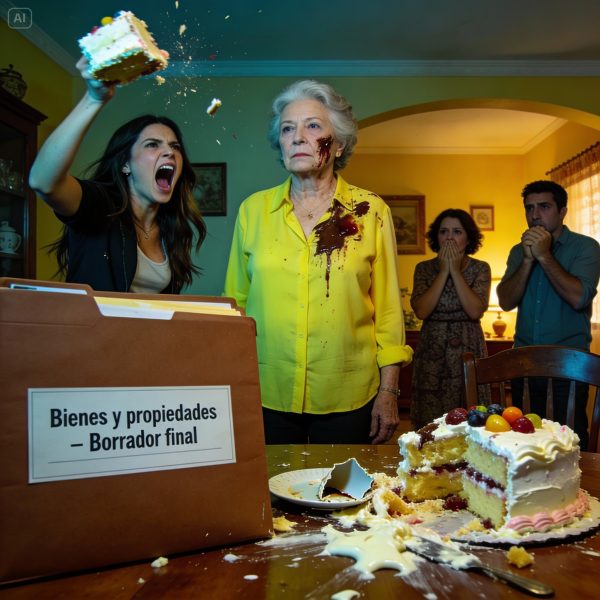 En cambio, dejé la carpeta en la mesa junto al pastel arruinado y me volví hacia Carla. “¿Podrías pasarme unas servilletas?”