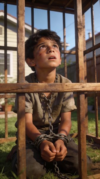 Nunca olvidaré lo que vi al llegar a la casa de mi hijo. Mi nieto estaba encadenado a una caseta de perro, con los labios secos y los ojos hundidos. Cuando susurró “agua…”, mi esposo se acercó y la tiró al suelo sin mirarlo. Sentí que el mundo se detenía. Quise gritar, correr, hacer algo… pero entonces él hizo algo aún peor. Algo que me heló la sangre y me obligó a tomar una decisión que cambiaría a esta familia para siempre.