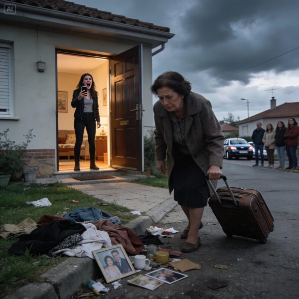 Cuando mi hija, Chloé Leclerc , tiró mis pertenencias a la acera, me quedé en el porche viendo cómo el viento agitaba mis suéteres doblados como si fueran basura. Mi maleta estaba abierta en el césped, con el lápiz labial rodando por la hierba y las fotos familiares enmarcadas boca abajo en la tierra. Los vecinos redujeron la velocidad, fingiendo no mirarme. A Chloé no le importó. Estaba colorada, con el teléfono en la mano, filmándome como si yo fuera la mala de su historia.
