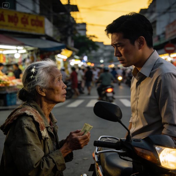 Tôi bỗng hiểu ra vì sao bà Thúy phải đi xin ngoài chợ. Không chỉ vì nghèo—mà vì bị dồn vào đường cùng bởi một kẻ biết cách đào bới bí mật.