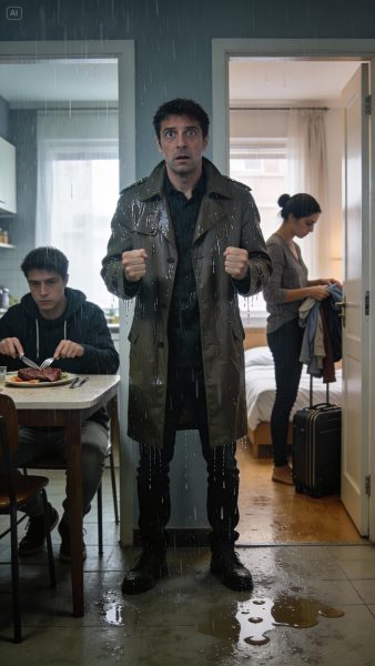 Llegué a casa esperando una noche tranquila y encontré a un desconocido sentado en mi mesa, comiéndose mi bistec como si nada. En la habitación, mi novia doblaba mi ropa con calma quirúrgica. Nadie se sobresaltó al verme. Nadie explicó nada. El silencio fue más insultante que la escena. Entonces él levantó la vista, sonrió y me dio las gracias por la cena. En ese instante entendí que no solo me estaban echando de casa… estaban borrándome de mi propia vida.