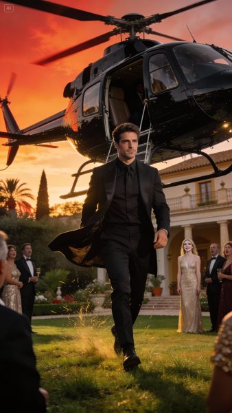 Cuando llegué, los vi reunidos en el jardín, copas en mano, risas estudiadas. Entonces el ruido ensordecedor llenó el aire. Las conversaciones se detuvieron. Un helicóptero descendía lentamente frente a todos, levantando hojas y miradas incrédulas.