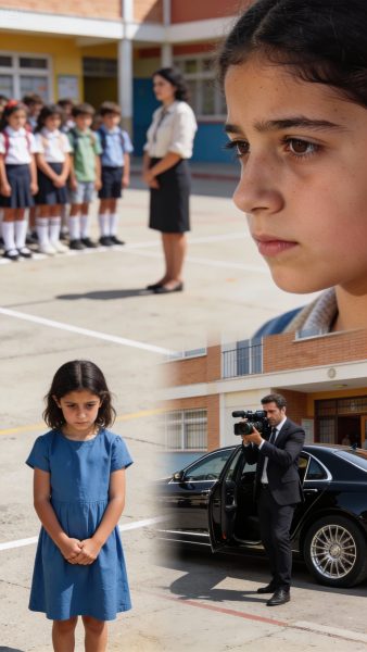 Mi hija no fue invitada a la foto de clase. “No tiene la ropa adecuada”, susurró la maestra creyendo que nadie escuchaba. Los niños rieron. Yo vi cómo mi hija bajó la cabeza y se alejó en silencio. Sentí una vergüenza que no era mía. Entonces un coche negro se detuvo frente a la escuela. Un hombre con traje bajó, cámara en mano. En ese instante, el murmullo se apagó. Y su llegada cambió por completo la historia que creían conocer.