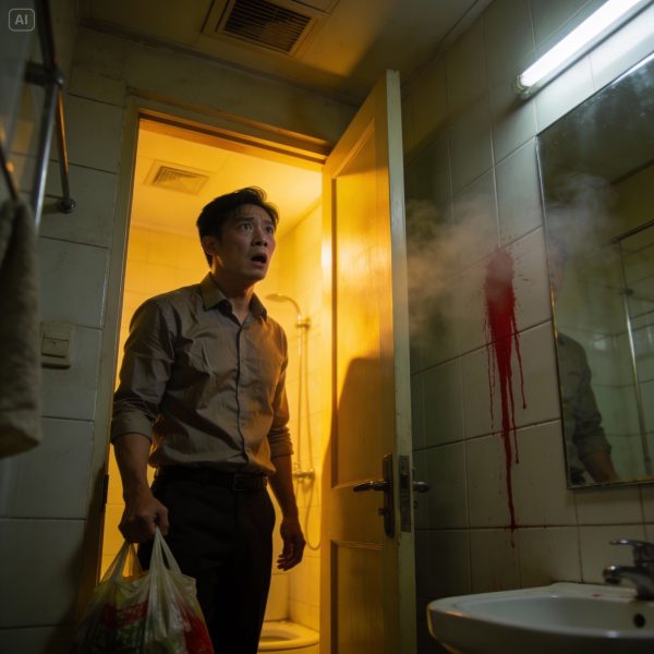 Lúc ấy tôi mới để ý: cửa phòng tắm khép hờ, bên trong có ánh đèn vàng nhạt rọi ra. Và có một thứ khiến tôi lạnh sống lưng: tiếng nước nhỏ giọt đều đều… như ai đó vừa tắm xong nhưng không khóa vòi.