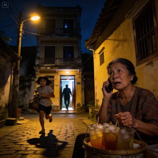 Không nghĩ được thêm, bà lập tức móc điện thoại gọi cho công an phường. Vừa gọi, bà vừa nhìn theo bóng Tùng đang chạy dọc con hẻm tối, nhỏ dần rồi mất hút.