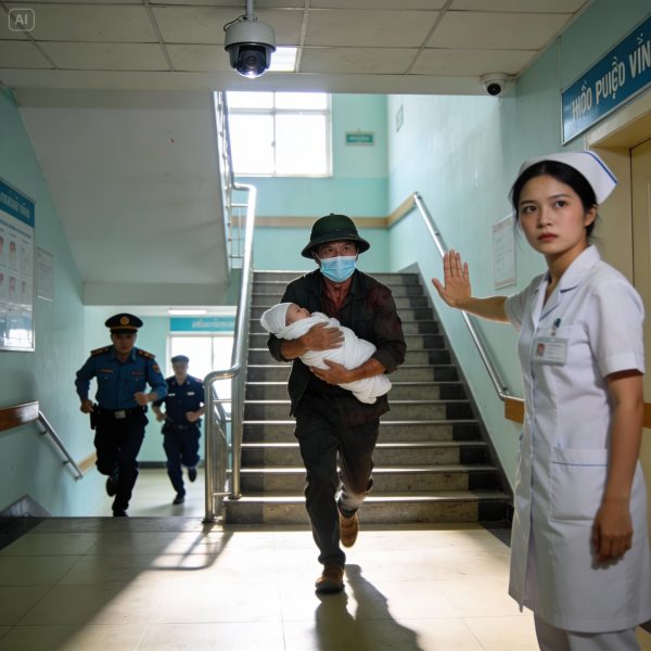 Y tá Thảo không đuổi theo một mình. Cô rút điện thoại, gọi thẳng: “Alo, công an phường ạ? Bệnh viện… có dấu hiệu bế trẻ sơ sinh trái phép…”