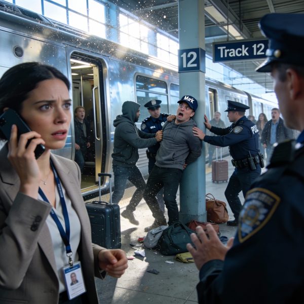 Al otro lado del andén, aparecieron dos agentes más, como si los hubieran llamado desde las paredes. Se movían con determinación, pero sin pánico, inclinándose para que los sospechosos no escaparan. Cuando Mark los vio, levantó la cabeza de golpe. Sus ojos se encontraron con los míos: abiertos, conmocionados y luego furiosos, como si hubiera arruinado su plan en lugar de mi vida.