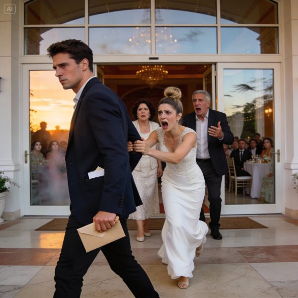 Cuando abrí la puerta de mi auto, vi a Alyssa enmarcada en la entrada del lugar: su vestido de novia brillaba contra el pasillo sombreado, los invitados comenzaban a mirarla y Carter se acercaba a ella con la confusión grabada en su rostro.
