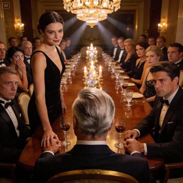 Veintitrés invitados de élite se quedaron paralizados, con los tenedores suspendidos en el aire. La lámpara de araña sobre nosotros zumbaba débilmente, como si hasta la electricidad contuviera la respiración. Mi novio, Adrian, se removió a mi lado, con la mandíbula apretada pero en silencio; entrenado toda su vida para no contradecir jamás a su padre en público.