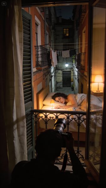 No una selfie borrosa ni un montaje. Era yo, con la mejilla aplastada contra la almohada, una mano fuera de la manta. La imagen estaba tomada desde arriba y en ángulo, como desde el exterior, apuntando a mi cama. Desde mi ventana.