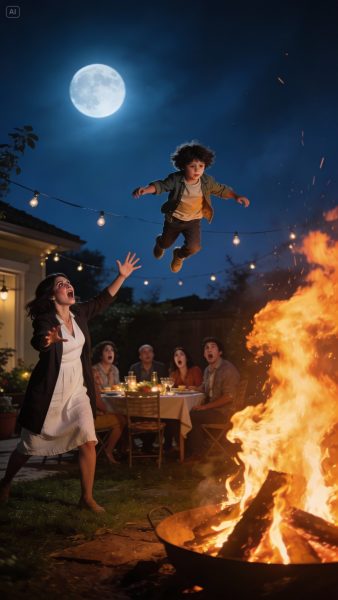 La “fiesta” era en el patio, con globos y sonrisas falsas. Mi madre sostuvo a mi bebé y me susurró: “Pariste antes que tu hermana… nos traicionaste”. El aire se congeló. Ella caminó hacia la fogata, y mi hermana alzó su copa, riéndose como si fuera un brindis. Yo grité y corrí… pero en el instante en que mi madre soltó “algo” hacia las llamas, escuché un clic metálico y un grito distinto: no era el llanto de mi bebé. Era la voz de un hombre diciendo: “¡Basta! ¡Todo quedó grabado!”