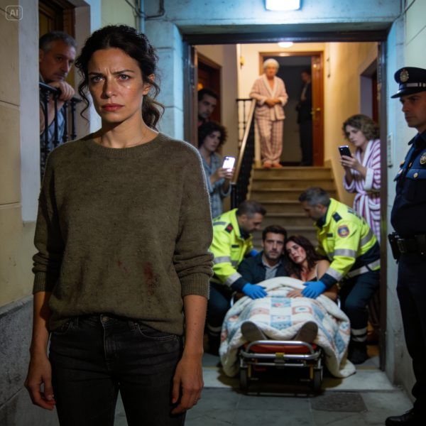 El edificio entero estaba despierto. Las luces de los rellanos encendidas, las puertas entreabiertas, ojos curiosos asomando por cualquier rendija posible. La escena era casi absurda: mi marido, siempre tan correcto, tan cuidadoso con su imagen, sentado en una camilla improvisada en mitad del portal, atrapado a esa desconocida como si el destino los hubiera soldado.