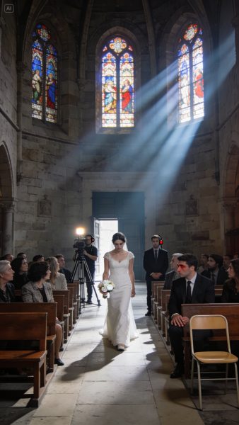 Entonces lo vi: al fondo de la iglesia, detrás de los últimos bancos, una cámara enorme sobre trípode. No era la cámara discreta de un invitado. Era de televisión. Un foco pequeño se encendió y alguien, con auriculares, hizo una señal con la mano.
