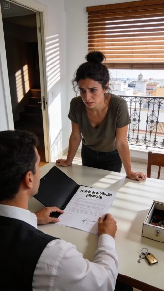 Traía una carpeta negra en la mano. Entró sin esperar invitación, como si la casa ya no fuera mía. Se sentó en la mesa del comedor, abrió la carpeta con cuidado y colocó unos papeles delante de mí. En la primera hoja, en letras grandes, vi: “Acuerdo de distribución patrimonial”.