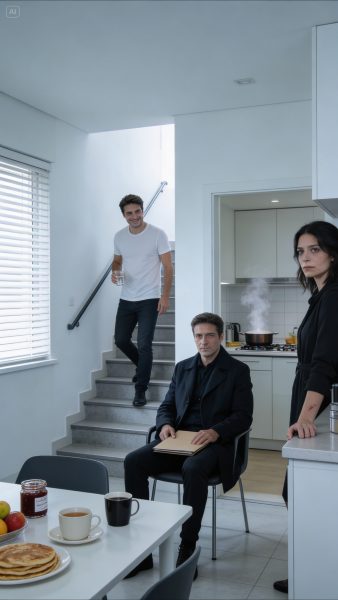 Al amanecer me levanté despacio, como si el aire pudiera hacer ruido. Me lavé la cara con agua fría para que el morado no pareciera un grito. Me cambié la camiseta rota. Y me puse a cocinar panqueques. La plancha chisporroteó; el olor dulce llenó la casa como una mentira. Puse la mesa con mermeladas, fruta cortada, café recién hecho, servilletas dobladas. Todo perfecto, como si estuviera ensayando una vida que no existía.