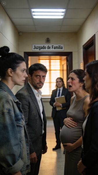 El juzgado de familia citó a las tres partes para una vista previa. El día de la comparecencia nos encontramos en el pasillo: Carla con una panza de casi cinco meses, luciendo un vestido ajustado, Lucía con una chaqueta vaquera que le quedaba demasiado grande, yo con un traje que no usaba desde una boda.