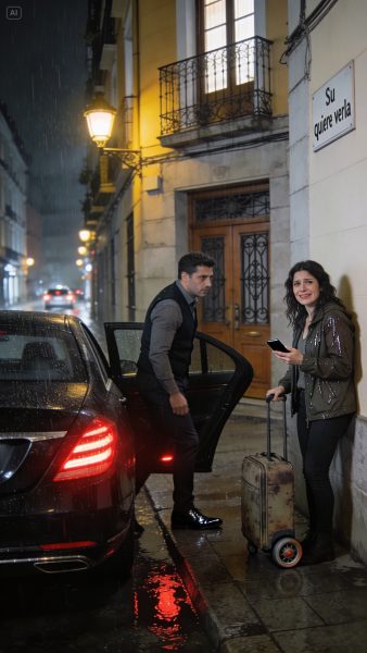 Mi esposo y mi suegra me echaron como si yo fuera una bolsa vieja. Con una maleta rota y la garganta apretada, terminé en la calle, mirando el mismo edificio donde antes “vivía”. La lluvia empezó justo cuando mi teléfono murió. Entonces, un auto de lujo se detuvo frente a mí. Un hombre de traje bajó, impecable, y dijo: “Su padre quiere verla”. Me reí por reflejo. ¿Mi padre? El que “murió” cuando yo era niña. Él no pestañeó. Solo abrió la puerta trasera y añadió: “No es una invitación. Es una deuda”.