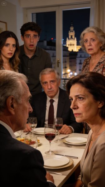 Las cuatro miradas se clavaron en mí al mismo tiempo. Antonio dejó el tenedor en el plato, muy despacio, como si supiera exactamente qué estaba a punto de pasar.