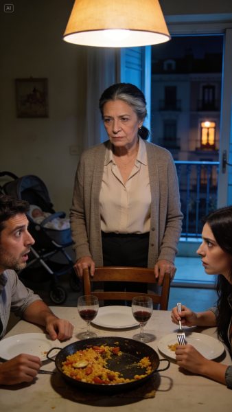 —La paella está muy hecha —murmuró Lucía, moviendo el arroz con la cuchara como si buscara pruebas de un crimen—. Mi madre nunca la deja tan seca.