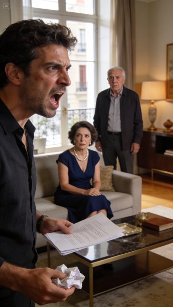 —¿Qué es esto? —preguntó, tirando los papeles sobre la mesa baja.