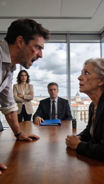 Entré la última. El despacho era enorme, con una cristalera que dejaba ver medio Madrid extendido hasta las montañas. Sobre la mesa de madera oscura, perfectamente ordenada, había una carpeta azul y un sobre marrón sin cerrar. Ninguna foto personal, ningún detalle que delatara a un hombre con vida fuera de ese despacho.