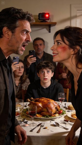 Cuando la mano de Javier descendió, no fue solo un golpe, fue la confirmación de algo que llevaba años esperando que los demás vieran. El sonido seco resonó entre los platos de pavo, las fuentes de tortilla y las copas de vino. Las conversaciones se cortaron en seco. El tenedor de mi padre cayó al plato con un tintineo ridículo. Yo caí hacia un lado, chocando contra la mesa, entre el mantel arrugado y una lluvia de cubiertos.