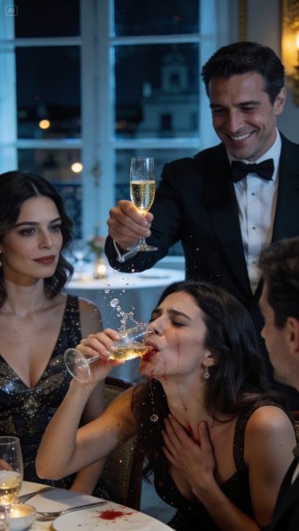 Su mano se deslizó hacia mi copa, dejó caer algo en el champán y volvió a su sitio en un movimiento corto, limpio, ensayado. Ni un derrame, ni una duda. Como quien ya lo ha hecho más de una vez.