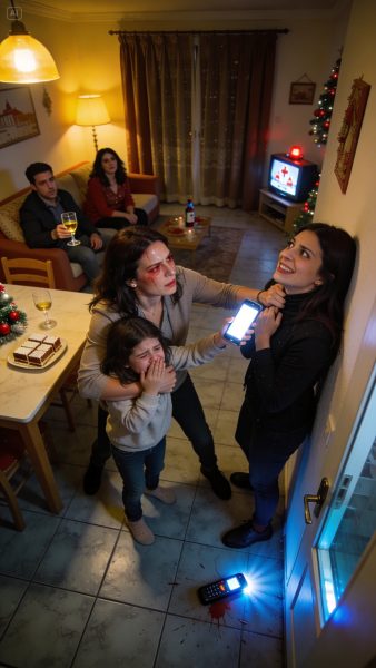 Era Navidad y mi hija de 7 años solo estaba poniendo la mesa, orgullosa, concentrada. Yo estaba en otra habitación cuando escuché a mi hermana decir en voz alta, con tono de espectáculo: “Miren todos lo que voy a hacerle a la hija de esta perdedora”. Corrí… y lo que vi me dejó sin aire: mi niña llorando, mi hermana riéndose, el móvil grabando en directo, y mis padres mirando como si fuera un chiste. En un segundo, todo se volvió caos. Llamé a emergencias con las manos temblando. Ellos suplicaban: “¡Solo era diversión!”. Yo solo pensé: esto no termina aquí.