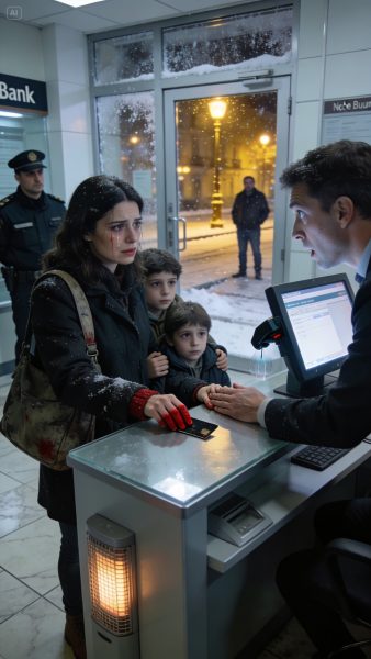 En Nochebuena, mi exmarido nos echó a la calle a mí y a los niños con una bolsa de ropa y cero dinero. La nieve me mordía los dedos mientras ellos preguntaban por qué “papá estaba tan enojado”. Con lágrimas, recordé una tarjeta vieja que mi madre me dejó “por si algún día todo se derrumba”. Corrí al banco como si fuera mi última oportunidad. Cuando la entregué, el cajero la pasó… y su rostro se puso blanco. Se levantó de golpe y gritó: “¡Señora, rápido… mire esto!”. Me acercó la pantalla. Y lo que vi me hizo olvidar hasta cómo respirar.