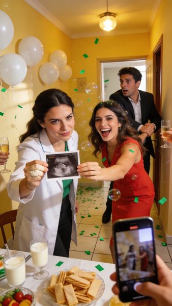 Fui al gender reveal de mi hermana y ella me puso la ecografía en las manos como si me entregara el mundo. El salón de eventos estaba en Valencia, decorado con globos blancos y una nube de papel picado que parecía nieve. En una esquina, una mesa con horchata, fartons y una tarta enorme con letras doradas: “BABY”. La gente reía, grababa con móviles, se abrazaba. Mi hermana Lara Vilanova brillaba de emoción. Su esposo, Álvaro Ríos, no soltaba su cintura, orgulloso, nervioso, feliz.