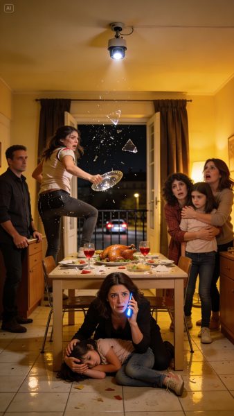 Nadie le hizo caso… y en un segundo el aire cambió. Nina se levantó tan rápido que tiró su silla. Con un manotazo barrió una bandeja de cristal del aparador —no sé si por rabia o por amenaza— y la bandeja cayó al suelo con un estruendo seco. Lía, asustada, se giró para mirar. Dio un paso atrás, tropezó con la pata de una silla y cayó.