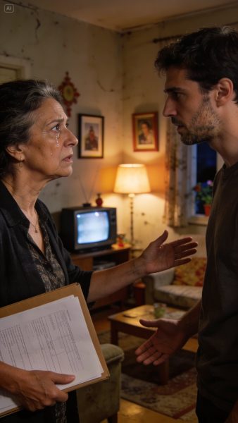 Durante un segundo, el piso quedó en silencio. El ruido distante de un taladro en el edificio contiguo parecía eco lejano. La expresión de Javier cambió de una máscara a otra; ya no hacía falta sonreír.