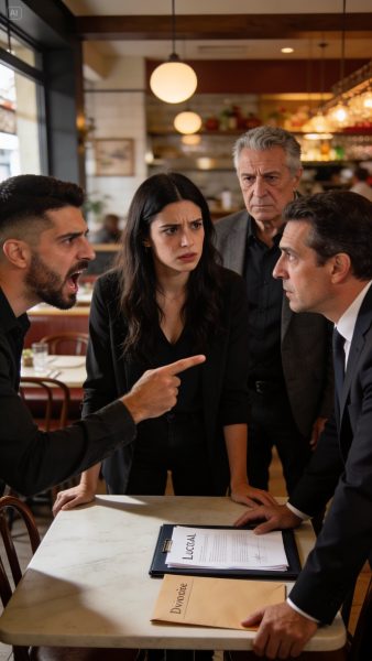 Diego miró hacia la cocina, donde dos camareros fingían no escuchar. Miró el sobre del divorcio, los papeles, a Lucía. Su orgullo luchaba con su instinto de supervivencia. Al final, cogió el bolígrafo.