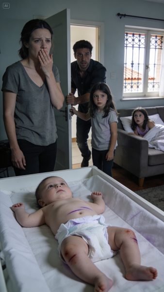 Estábamos cuidando a mi sobrina recién nacida cuando mi hija de seis años se ofreció a cambiarle el pañal, orgullosa, como una “hermana mayor”. Yo estaba en la cocina cuando la oí gritar: “¡Mamá! ¡Mira esto!”. Corrí pensando que era una fuga, un rash, cualquier cosa normal. Pero cuando levanté la vista hacia el pañal abierto, se me borraron las palabras. No era algo que se cura con crema. Mi esposo entró detrás de mí, vio lo mismo y, sin decir nada, tomó a nuestra hija y la llevó a otra habitación. Luego marcó 911 con las manos temblando. Y el silencio que quedó en el cuarto… fue peor que cualquier llanto.
