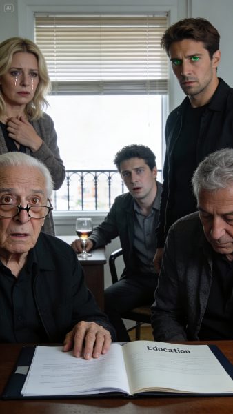Tristan abrió la carpeta con una risa pequeña, segura, como quien cree que va a ver un papel sin importancia. Sus ojos se movieron por la primera página. Luego por la segunda. Su cara cambió milímetro a milímetro: el color se le fue de las mejillas y la boca se le quedó apenas abierta.