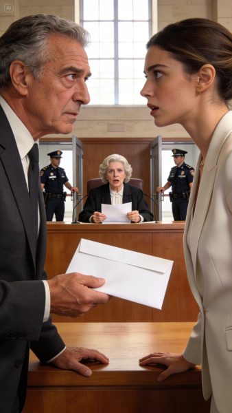 Su abogado, Tomás Ferrer, le tocó el codo: era el momento de responder. Javier se puso en pie despacio. No pidió discursos; pidió permiso. “Señoría… solo quiero entregar un documento”. Sacó un sobre blanco, sin membrete, y caminó hasta el estrado. Lucía ladeó la cabeza, divertida, como quien observa a alguien perder el tiempo.