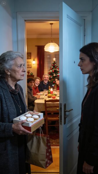 Di media vuelta con más dignidad de la que sentía. Bajé un tramo, luego otro. En el rellano del primero tuve que apoyar la caja de polvorones en el suelo porque me temblaban las manos. Me quedé allí quieta, escuchando el ruido lejano de cubiertos y voces arriba, pensando que quizá ya era hora de aceptar que algunas puertas, incluso las de tu propia hija, se cierran para siempre.