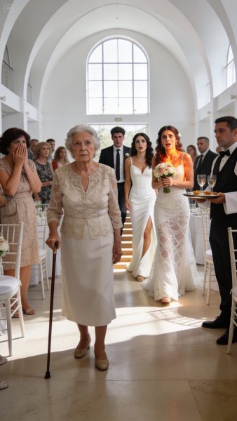 El día de mi boda pensé que nada podía sorprenderme… hasta que la mejor amiga de mi prometido apareció vestida de blanco, con un vestido de novia más llamativo que el mío. Caminó hacia mí sonriendo y, en voz baja, me dijo: “Será mejor que te apartes. Tú no perteneces aquí”. Sentí que la sangre me hervía mientras todos fingían no entender lo que pasaba. Yo estaba a punto de responderle cuando mi abuela se puso de pie, golpeó el suelo con su bastón y dijo una sola frase. El salón entero quedó en silencio… y la sonrisa de esa mujer desapareció de golpe.