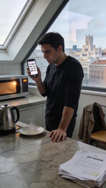 Pasó en Madrid, un martes por la noche. Yo, Dylan Mercer, estaba calentando una cena que ella no iba a comer, oyendo el zumbido del microondas como si fuera el único sonido que quedaba en mi vida. El mensaje apareció en la pantalla y durante un segundo pensé que era una broma cruel de alguien que le había robado el móvil.