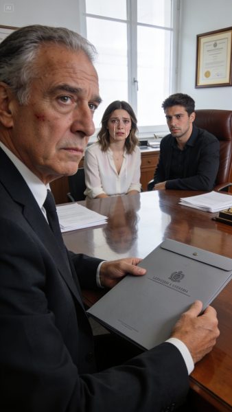 Quedaron en enero, en una sala privada de una notaría en Madrid que Álvaro había elegido creyendo que allí cerraría el negocio de su vida. Lucía llegó impecable, con un abrigo claro y una sonrisa ensayada. Álvaro llevaba una carpeta azul, seguridad prestada y un exceso de colonia. Hablaron primero ellos. Álvaro explicó el proyecto con entusiasmo: comprar un local en Lavapiés, reformarlo, abrir una cadena pequeña de apartamentos de alquiler temporal. Lucía intervino en los momentos exactos: “Mamá habría querido que el patrimonio creciera”, “no puedes seguir cargando con todo tú solo”, “esto también es por ti”. Luego deslizaron los documentos. La operación requería vender la nave o hipotecarla para obtener liquidez inmediata.
