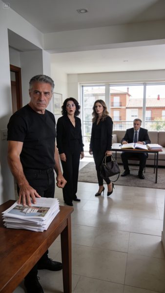 Encontraron a Javier de pie, impecablemente vestido, con la escritura de la casa sobre la mesa del recibidor, un abogado sentado en el salón… y una sonrisa lenta, helada, que las dejó clavadas en el umbral.