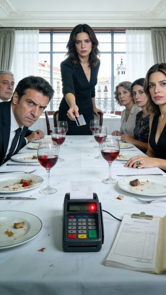 Respiré. Saqué la tarjeta. El camarero dudó, incómodo. Javier se reclinó en la silla, disfrutándolo. La máquina pitó una vez, luego otra. Pago aprobado.